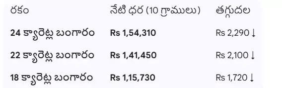 బంగారం ధరల్లో భారీ ఊరట లభించింది. 24 క్యారెట్ల పసిడిపై ఏకంగా రూ. 2,290 మేర కోత పడింది.