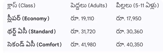 ప్యాకేజీ ధరల వివరాలు (ఒక్కొక్కరికి):