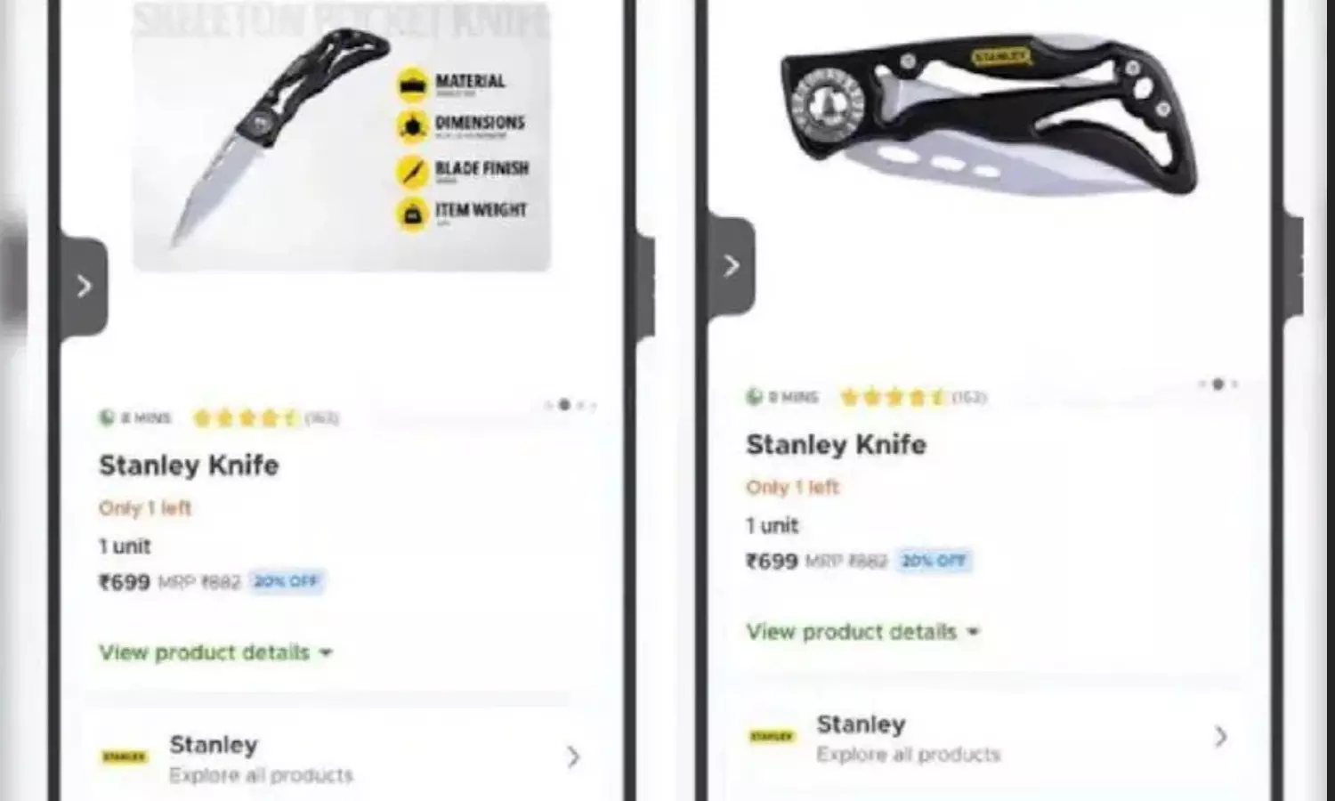 నిబంధనలకు విరుద్ధంగా బటన్ కత్తులు విక్రయించిన ఆరోపణలపై బ్లింకిట్పై ఢిల్లీ పోలీసులు కేసు నమోదు చేశారు. గిడ్డంగుల్లో 55 కత్తులు స్వాధీనం.
