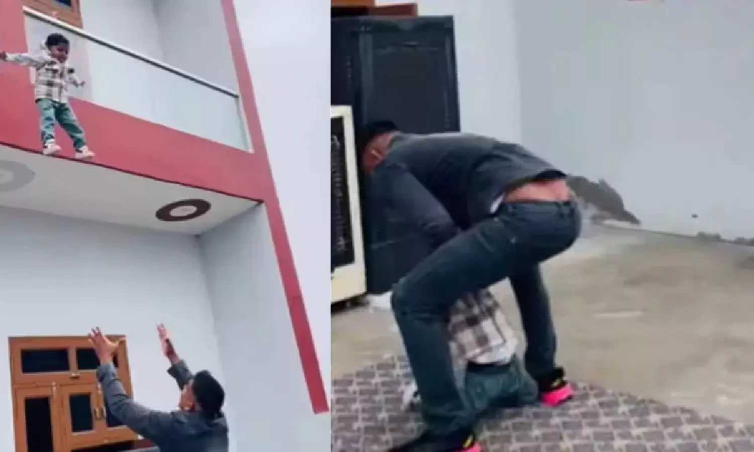 Viral Video : తల్లిదండ్రుల మీద బిడ్డలకు ఉండే నమ్మకం ఎంత బలమైనదో చెప్పడానికి ఈ వైరల్ వీడియో ఒక నిదర్శనం. సోషల్ మీడియాలో చక్కర్లు కొడుతున్న ఈ వీడియోలో సుమారు రెండేళ్ల వయసున్న ఒక చిన్నారి తన ఇంటి మొదటి అంతస్తు బాల్కనీ గోడ మీద నిలబడి కనిపిస్తాడు. అంత ఎత్తులో ఉన్నా ఆ బాబు ముఖంలో భయం కంటే, కింద ఉన్న తన తండ్రిని చూస్తున్నప్పుడు కలిగే ఒక రకమైన ఉత్సాహం స్పష్టంగా కనిపిస్తోంది. సాధారణంగా అంత ఎత్తులో ఉంటే పెద్దవారే భయపడతారు, కానీ ఆ పసివాడు మాత్రం తన తండ్రి వైపు చూస్తూ దూకడానికి సిద్ధమయ్యాడు.