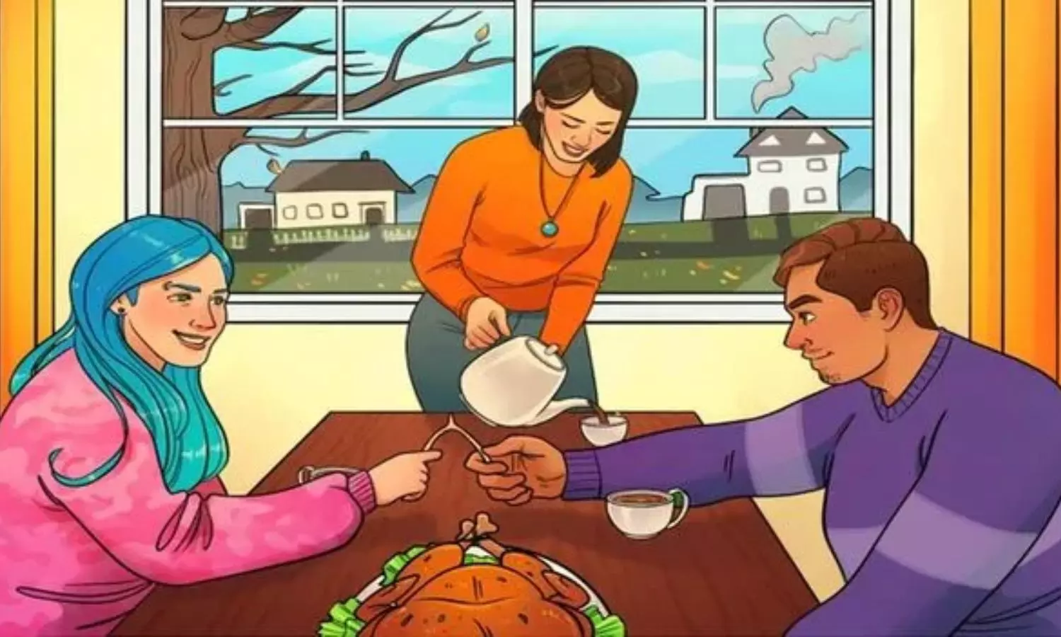 పై ఫొటోలో ఒక డైనింగ్ టేబుల్ వద్ద ముగ్గురు వ్యక్తులు ఉన్నారు. మొదటి చూపులో అంతా సాధారణంగానే కనిపిస్తున్నా, ఆ దృశ్యంలో ఒక చిన్న తప్పు దాగి ఉంది. ఆ తప్పు ఏమిటో 6 సెకన్ల వ్యవధిలో కనిపెట్టడమే మీకు ఉన్న సవాల్.