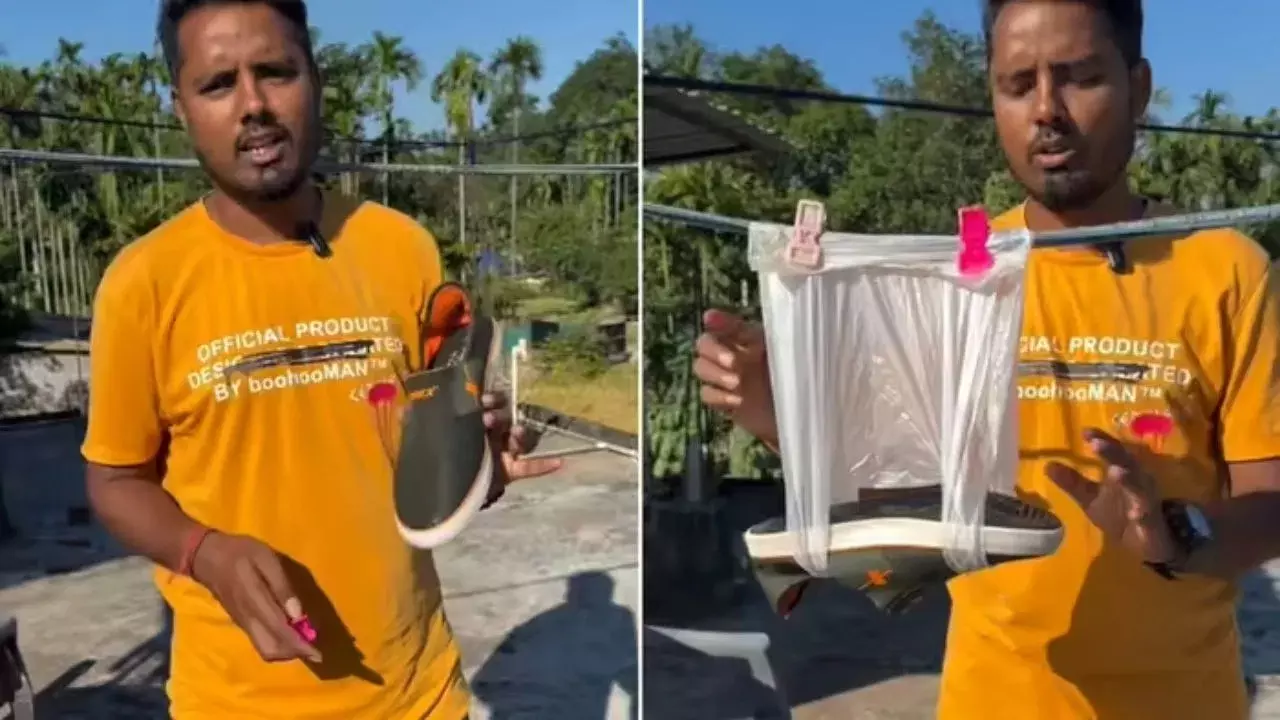 చలికాలం, వర్షాకాలంలో తడిచిన బూట్లను ఆరబెట్టడం ఒక పెద్ద సవాల్. సాధారణంగా చాలామంది బూట్లను నేల మీద పెట్టడమో లేదా గోడకు ఆనించి ఉంచడమో చేస్తారు. ఇలా చేయడం వల్ల బూట్ల లోపల ఉన్న నీరు బయటకు పోక, లోపలే తేమ ఉండిపోతుంది. కానీ ఈ వైరల్ వీడియోలో ఒక వ్యక్తి కేవలం ఒక ప్లాస్టిక్ కవర్, రెండు క్లిప్పుల సాయంతో షూస్ను అతి తక్కువ సమయంలో ఎలా ఆరబెట్టవచ్చో చూపించాడు. ఈ ట్రిక్ చూసిన వారు "ఇంత సింపుల్ ఐడియా మాకు ఎందుకు రాలేదు" అని ఆశ్చర్యపోతున్నారు.
