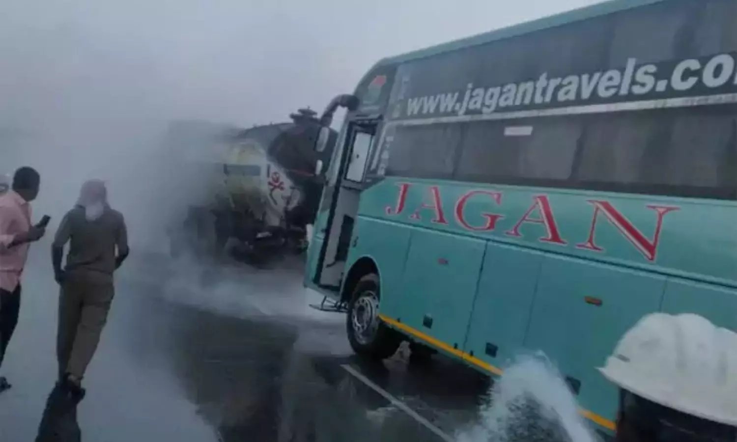 Mahabubnagar: కెమికల్ ట్యాంకర్ ను ఢీకొట్టిన జగన్ ట్రావెల్స్ బస్సు
