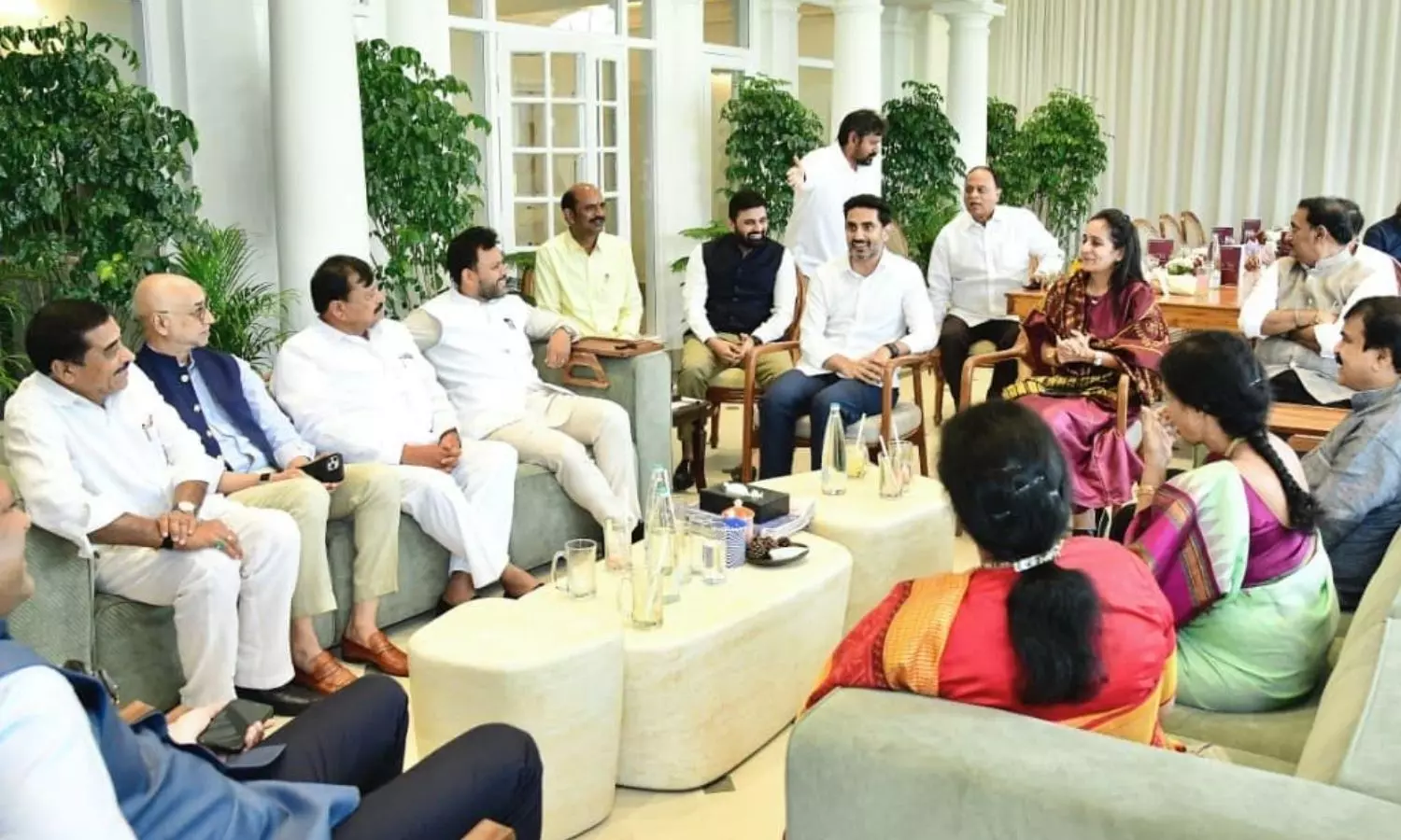 Nara Lokesh: ఢిల్లీలో జరిగిన కూటమి ఎంపీల ఆత్మీయ సమావేశం ఆప్యాయత వాతావరణంలో సాగింది. కేంద్ర పౌర విమానయాన శాఖ మంత్రి కింజరాపు రామ్మోహన నాయుడు తన అధికార నివాసంలో బుధవారం మధ్యాహ్నం ఏర్పాటు చేసిన ఈ విందు సమావేశానికి ఆంధ్రప్రదేశ్ విద్య, ఐటీ శాఖ మంత్రి నారా లోకేష్ హాజరై అందరితో ఉన్న బంధాలను మరింత బలపరిచారు. ఈ సమావేశంలో కూటమికి చెందిన ఎంపీలు, నాయకులు పాల్గొని పరస్పరం ఆప్యాయంగా ముచ్చటించుకున్నారు. ఈ సందర్భంగా మంత్రి నారా లోకేష్ అక్కడికి వచ్చిన ప్రతి ఒక్కరినీ పేరుపేరునా పలకరిస్తూ ప్రత్యేకంగా ఆకట్టుకున్నారు. నారా లోకేష్ ఢిల్లీలో అధికారిక కార్యక్రమాలతో బిజీగా ఉన్నప్పటికీ కూటమి ఎంపీలతో ఈ విధంగా ఆత్మీయంగా సందడి చేయడం అందరిలో ఉత్సాహాన్ని నింపింది. కేంద్ర మంత్రి రామ్మోహన నాయుడు కుటుంబ సభ్యులు కూడా ఈ సమావేశంలో పాల్గొని ఆతిథ్యాన్ని అందించారు.
