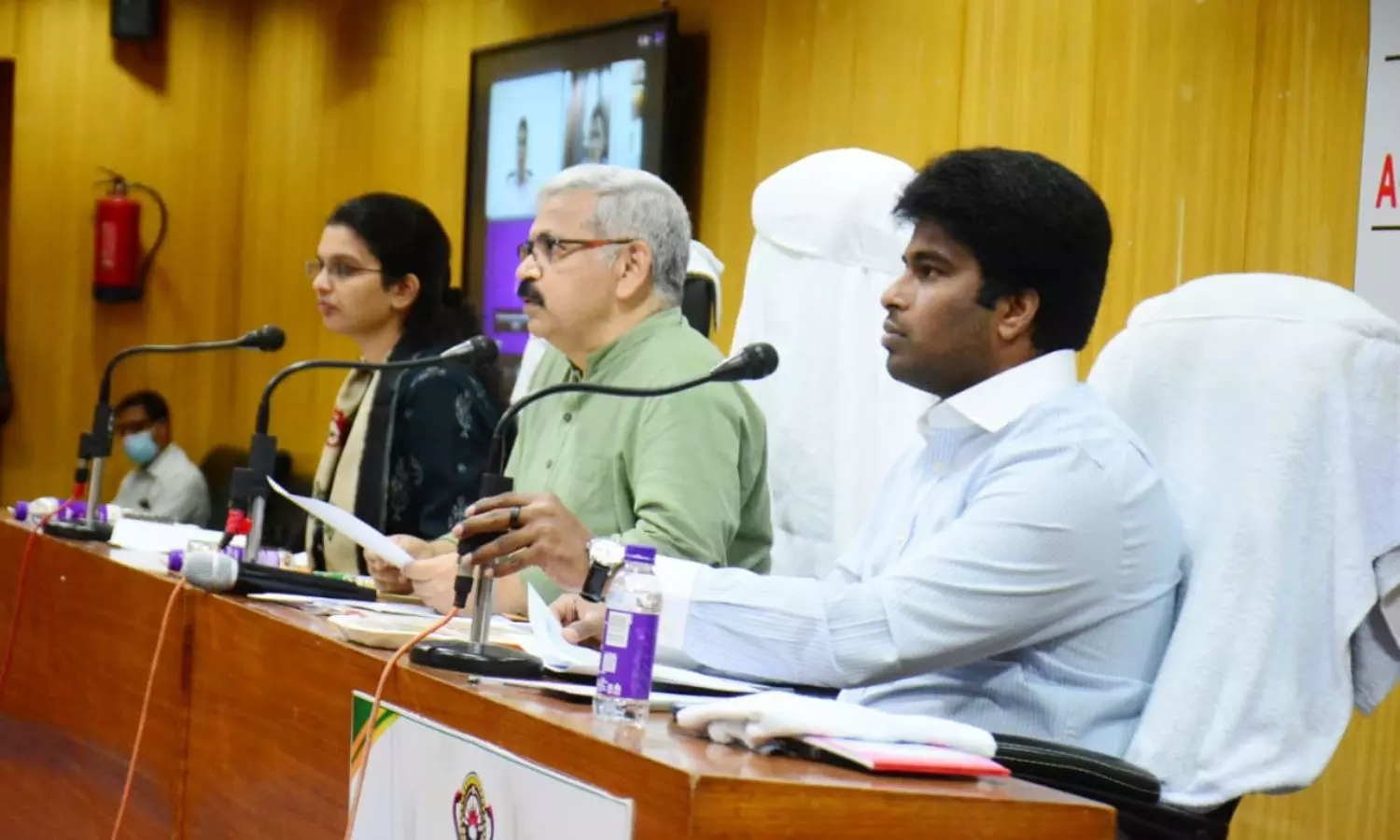 యూనివర్సిటీ అధికారులతో శుక్రవారం ఏయూ సెనేట్ హాలులో సంయుక్త సమీక్షా సమావేశం నిర్వహించారు. పలు అంశాలపై సుదీర్ఘంగా చర్చించారు. వర్చ్యువల్ గా పాల్గొన్న రాష్ట్ర విద్యాశాఖ కార్యదర్శి కోన శశిధర్, కాలేజియేట్ ఎడ్యుకేషన్ కమిషనర్ భరత్ గుప్తా పలు అంశాలపై అధికారులకు సూచనలు చేశారు. చెక్ లిస్టు ప్రకారం అన్ని ఏర్పాట్లూ చేసుకోవాలని సూచించారు.