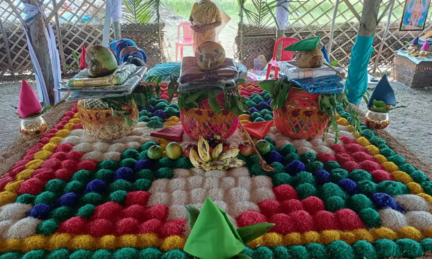 బ్రహ్మశ్రీ భూరాడ ఈశ్వర సాయి శర్మ ఆధ్వర్యంలో ఉదయం 8 గంటలకు విఘ్నేశ్వర పూజతో కార్యక్రమాలు మొదలయ్యాయి. అనంతరం పుణ్యాహ వాచనం, పరిషత్ ప్రాయశ్చిత్తం, పంచగవ్యారాధన, మాత్స్యకారాధనలు, అఖండ దీప స్థాపన, ఆచార్య రిత్విక్ వరుణులు, రక్షాధారణ, యాగశాల సంస్కారం శాస్త్రోక్తంగా నిర్వహించారు.