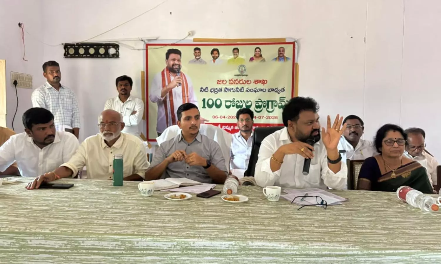 నీటి భద్రత -సాగు నీటి సంఘాలు బాధ్యత 100 రోజులు ప్రోగ్రాం సందర్బంగా రైతులకు సంబంధించిన మధుములు,చెక్ డ్యామ్ లు, చెరువులు, సర్పల్స్ లు, డ్రాప్ లు ,సంబందించిన నియోజకవర్గం లో సదరు పనులను NREGS లో పూర్తి చేయాలనీ అధికారులును ఆదేశించారు.
