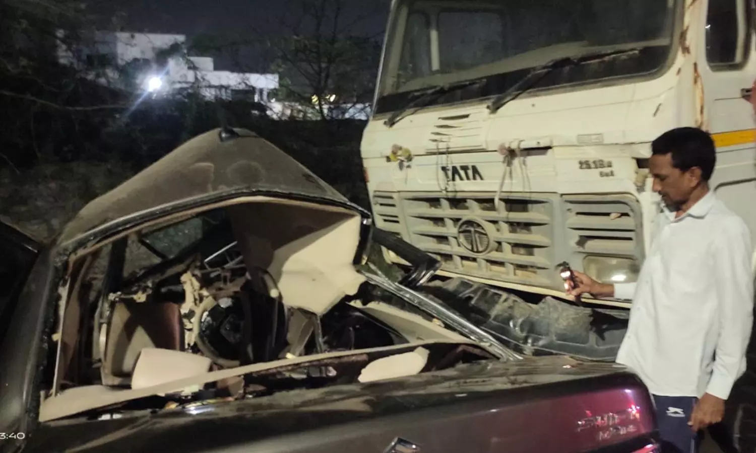 కరీంనగర్: కరీంనగర్ బైపాస్ వద్ద ఘోర రోడ్డు ప్రమాదం, ఆగి ఉన్న లారీని ఢీకొన్న కారు.