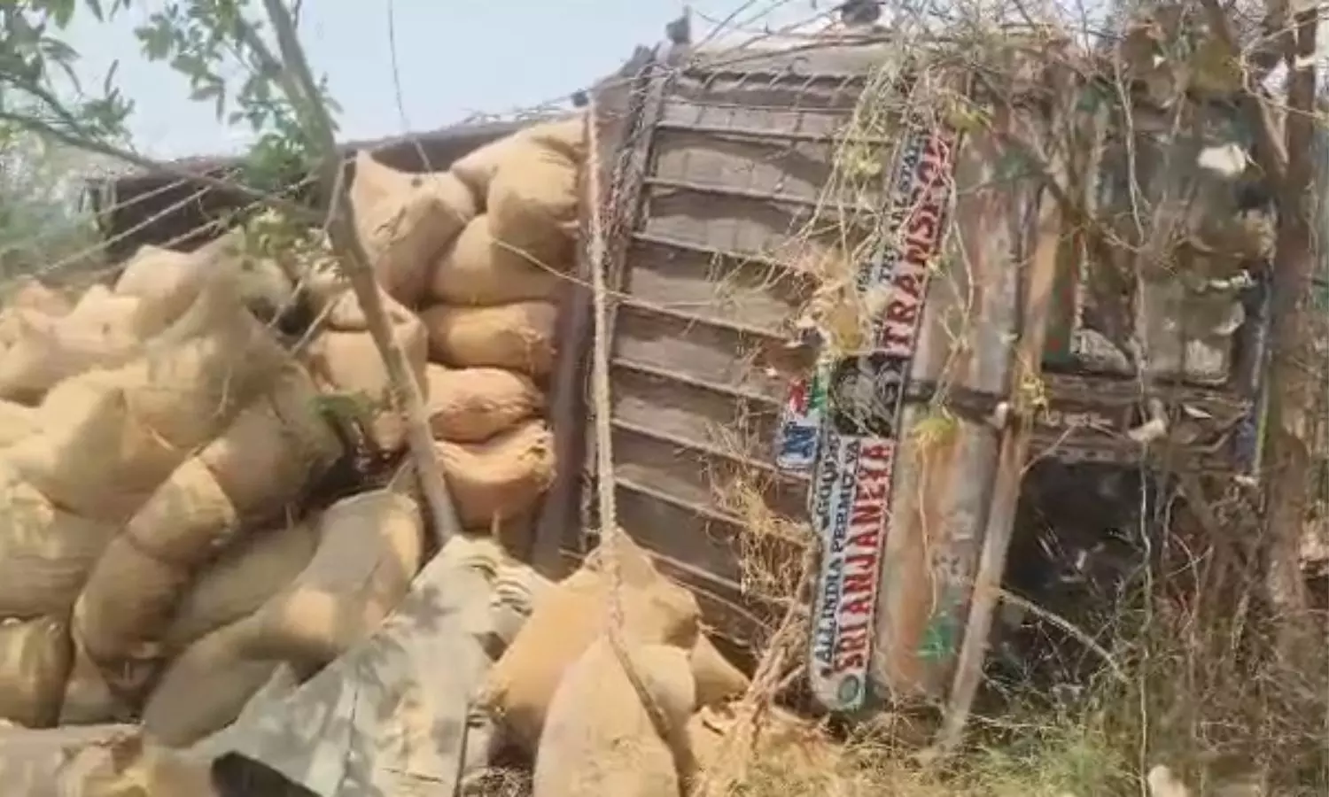 Bodhan: బోధన్ సమీపంలో తప్పిన పెను ప్రమాదం.. వడ్ల లారీ బోల్తా!