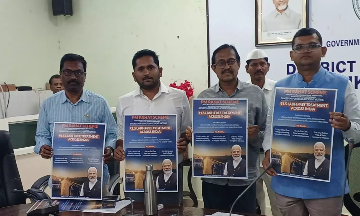 Srikakulam: శ్రీకాకుళం జిల్లాలో పిఎం రాహత్ పథకం పోస్టర్ విడుదల. రోడ్డు ప్రమాద బాధితులకు ₹1.50 లక్షల వరకు ఉచిత వైద్యం.