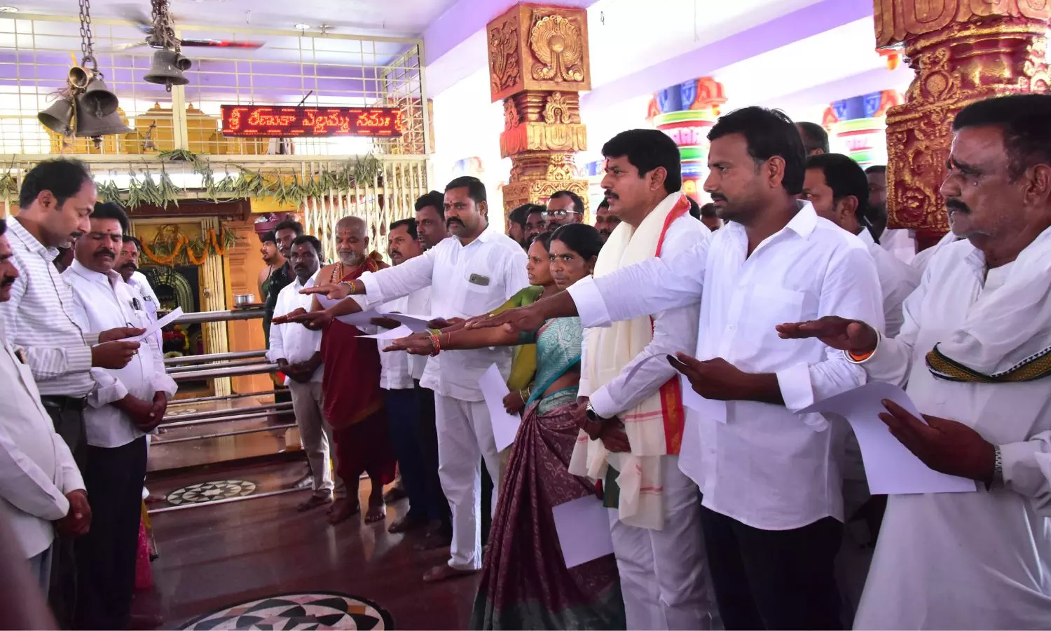 Tandur: వికారాబాద్ జిల్లా తాండూర్ మండలం కొత్లాపూర్ గ్రామంలో శ్రీ రేణుక ఎల్లమ్మ తల్లి దేవస్థాన నూతన చైర్మన్ పట్లోళ్ళ ప్రవీణ్ రెడ్డి మరియు పాలకవర్గ సభ్యుల ప్రమాణస్వీకార మహోత్సవ కార్యక్రమంలో ఎమ్మెల్యే బుయ్యని మనోహర్ రెడ్డి ముఖ్యఅతిథిగా పాల్గొన్నారు.పాలకవర్గ సభ్యులకు శుభాకాంక్షలు తెలిపారు.