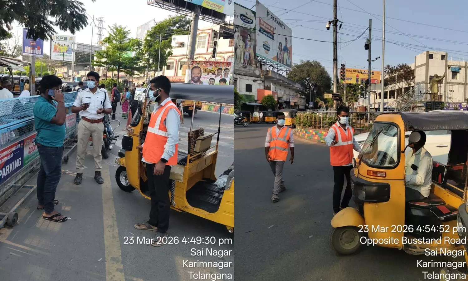 కరీంనగర్ పట్టణ ట్రాఫిక్ పోలీస్ స్టేషన్ పరిధిలో మద్యం సేవించి వాహనం నడుపుతూ పట్టుబడి, ట్రాఫిక్ నిబంధనల ఉల్లంఘనకు పాల్పడి పోలీసులకు పట్టుబడిన ఇద్దరు వ్యక్తులకు కోర్టు వినూత్న శిక్ష ఖరారు చేసింది. నిబంధనల అతిక్రమణకు గానూ విధించిన జరిమానా చెల్లించడంలో విఫలమైనందుకు, సదరు వ్యక్తుల ఇద్దరికీ, ఒకరికి 03 రోజుల సామాజిక సేవ, మరొకరికి 06 రోజుల పాటు పోలీసుల పర్యవేక్షణలో సామాజిక సేవ చేయాలని కోర్టు ఆదేశించింది.