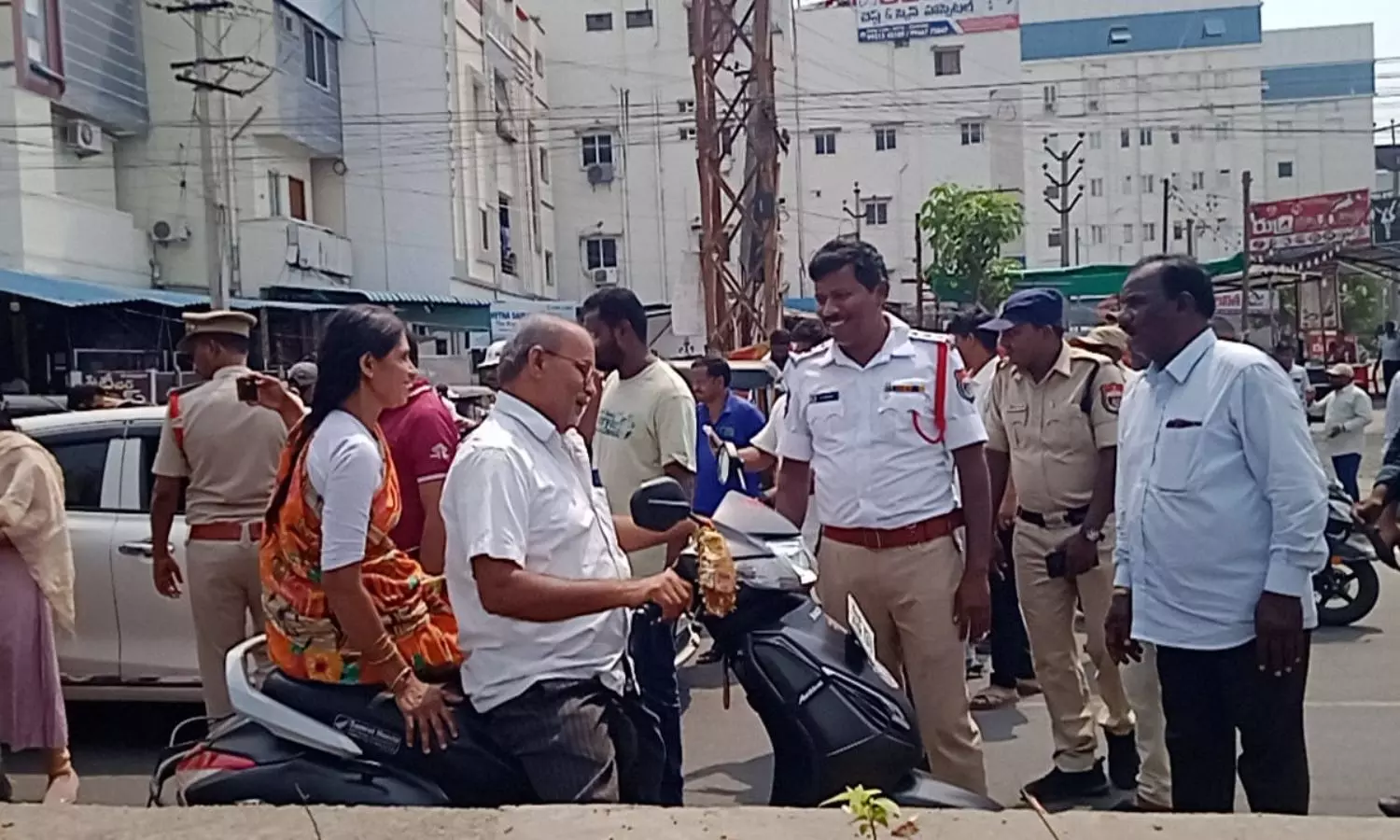 హెల్మెట్ లేని వాహనదారులకు గులాబీలు.. ట్రాఫిక్ పోలీసుల వినూతన ప్రయోగం
